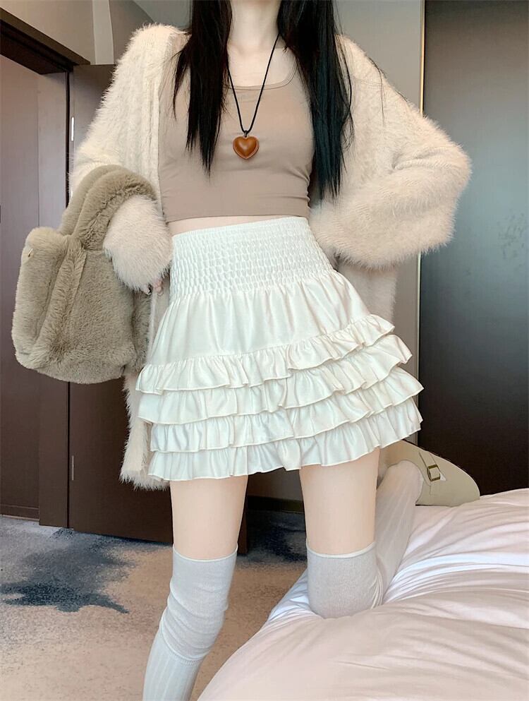 ウエストスカート春夏プレッピースタイルフリルホリデーシックミニホットスウィートファルダ Y2k オールマッチイン ラッフル 大人ガーリー キュート カジュアル スプリング 春物 サマー 夏物