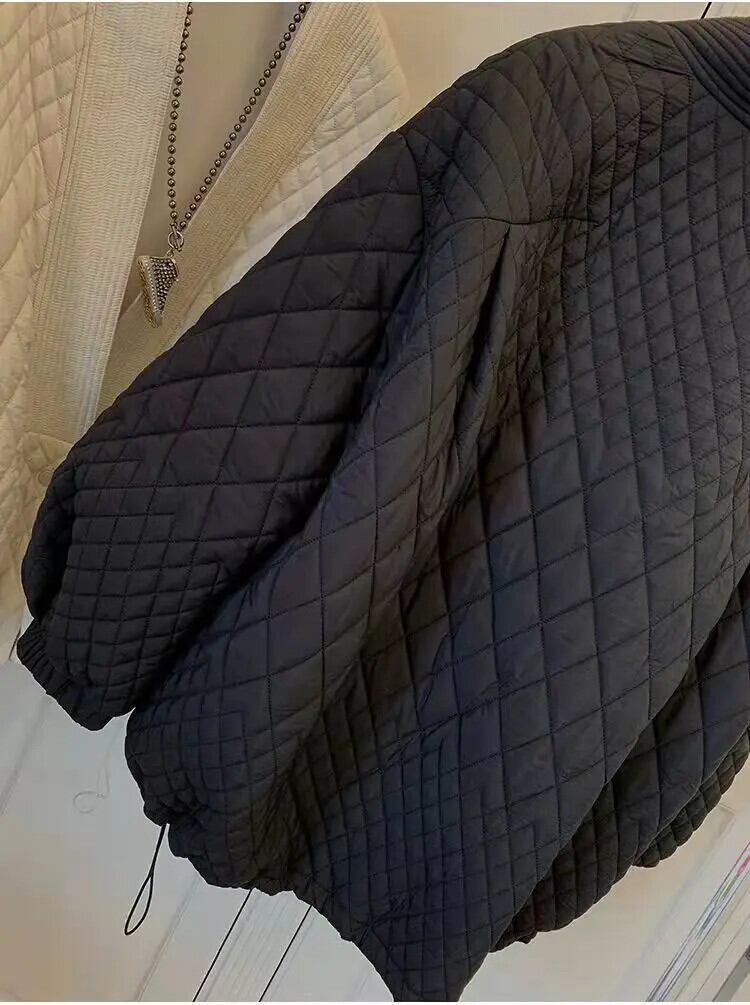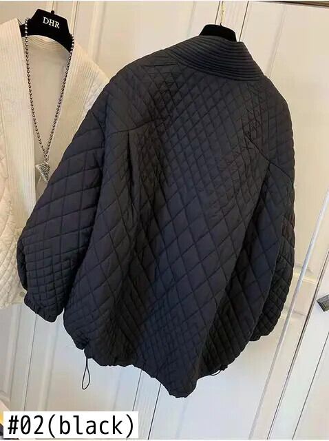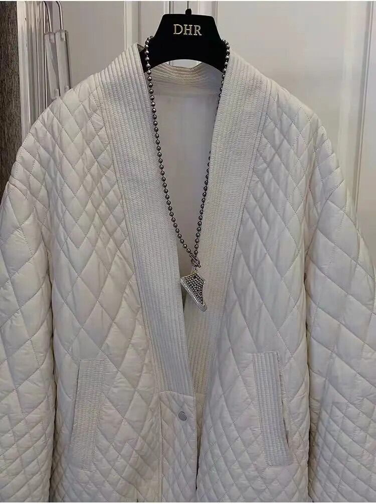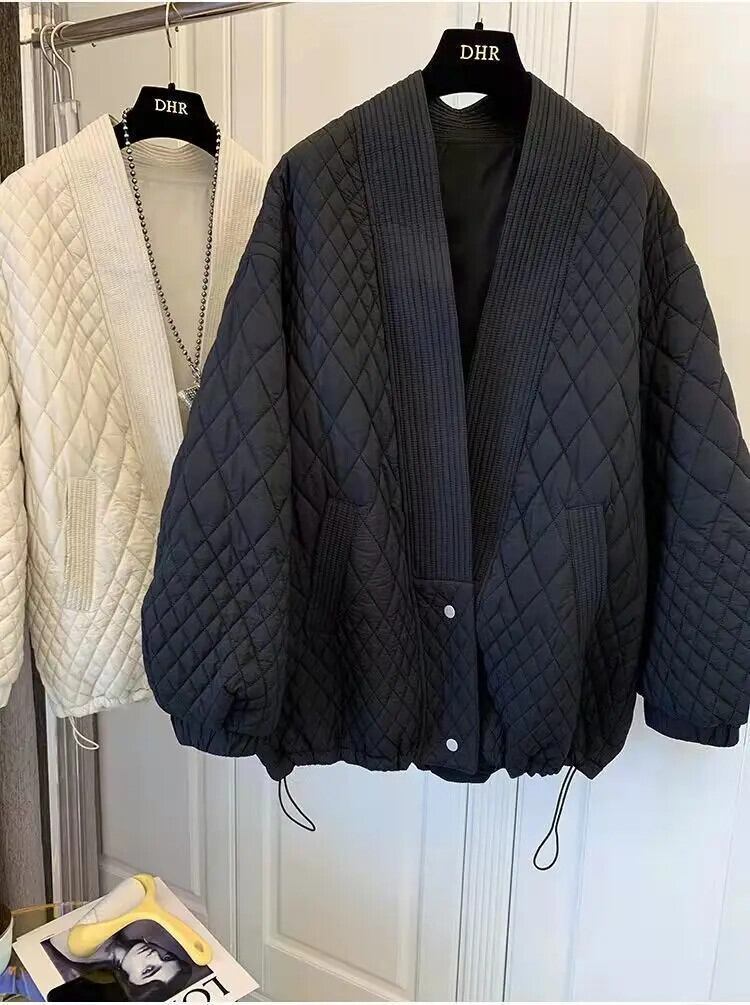 ストリートソリッドルーズパーカーアーガイルバブル秋冬ジャケット V ネック長袖黒原宿コート ロング ブラック かわいい ウィンター 冬物 Vネック ソリッドカラー