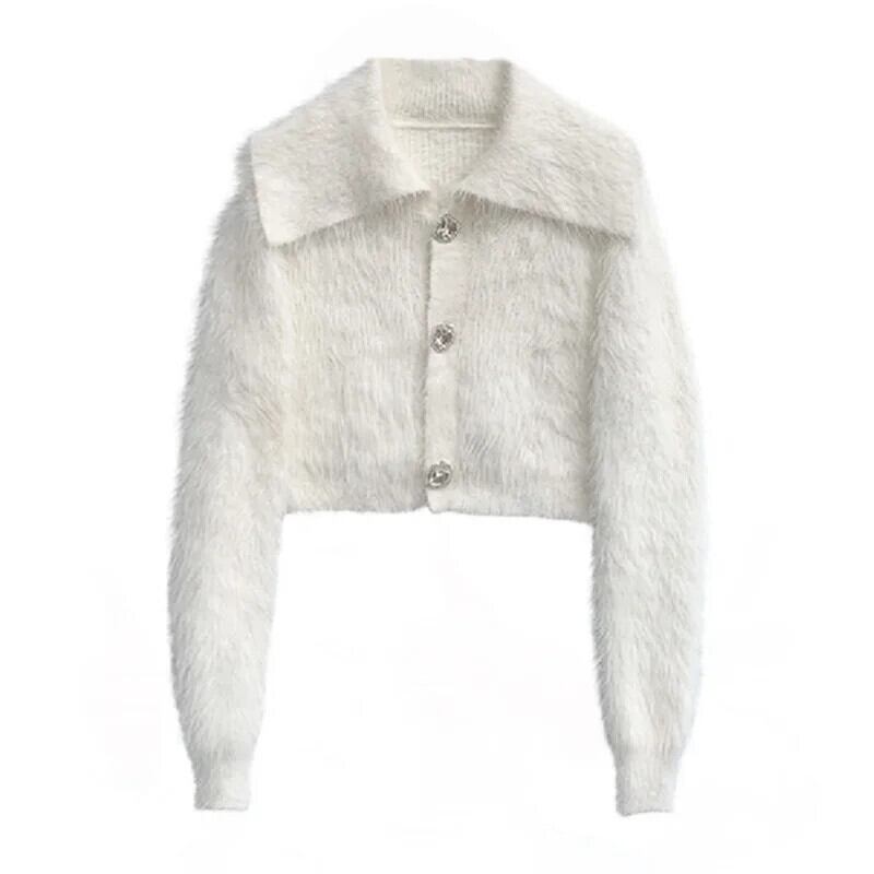 原宿秋カーディガンぬいぐるみ暖かいセーターシックで甘いシンプルアウターガールスタイルミンクカシミヤセーターホワイト 大人ガーリー スウィート キュート カジュアル かわいい オータム 秋物