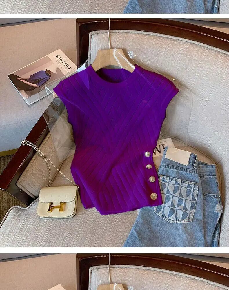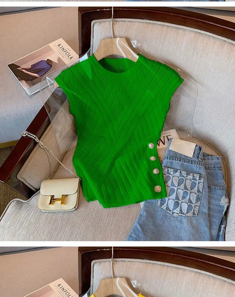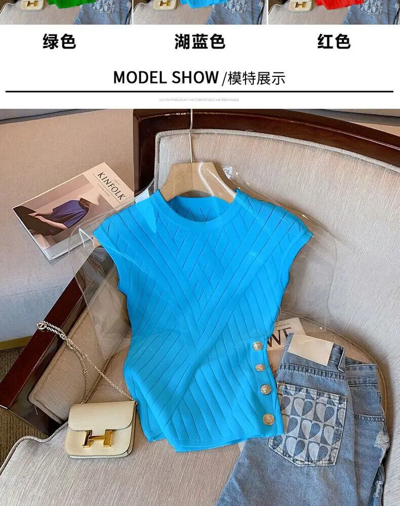 フレンチスタイルノースリーブ Tシャツアイスニットベストソフトスリム O ネックトップス Tシャツ Oネック シルク
