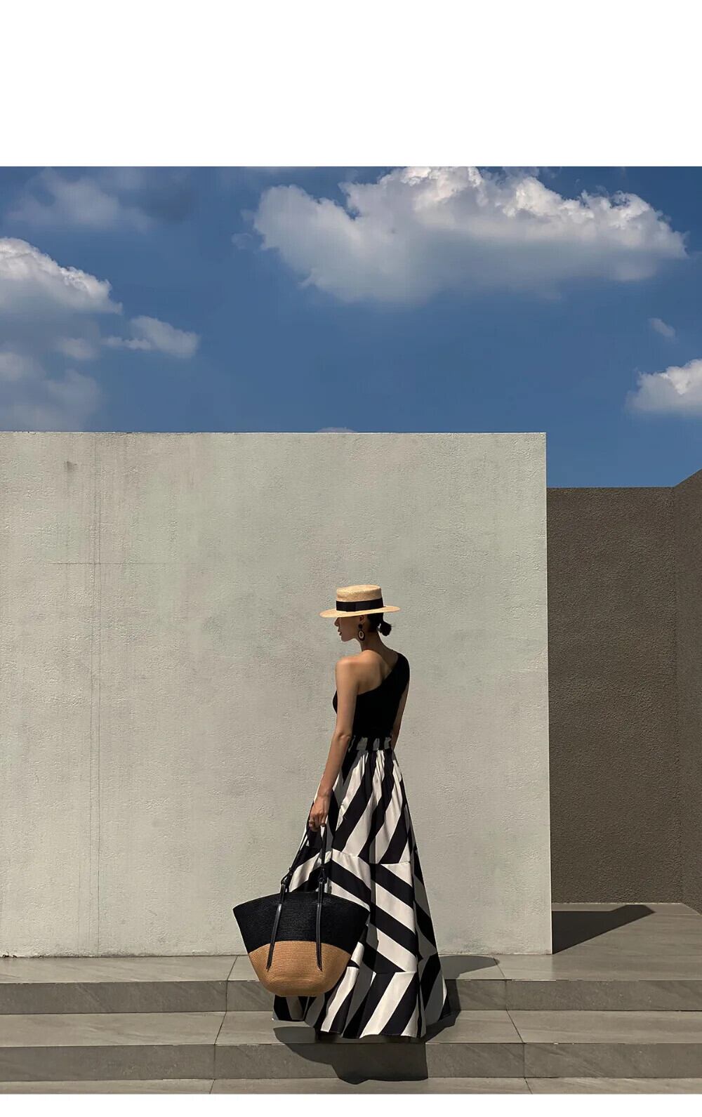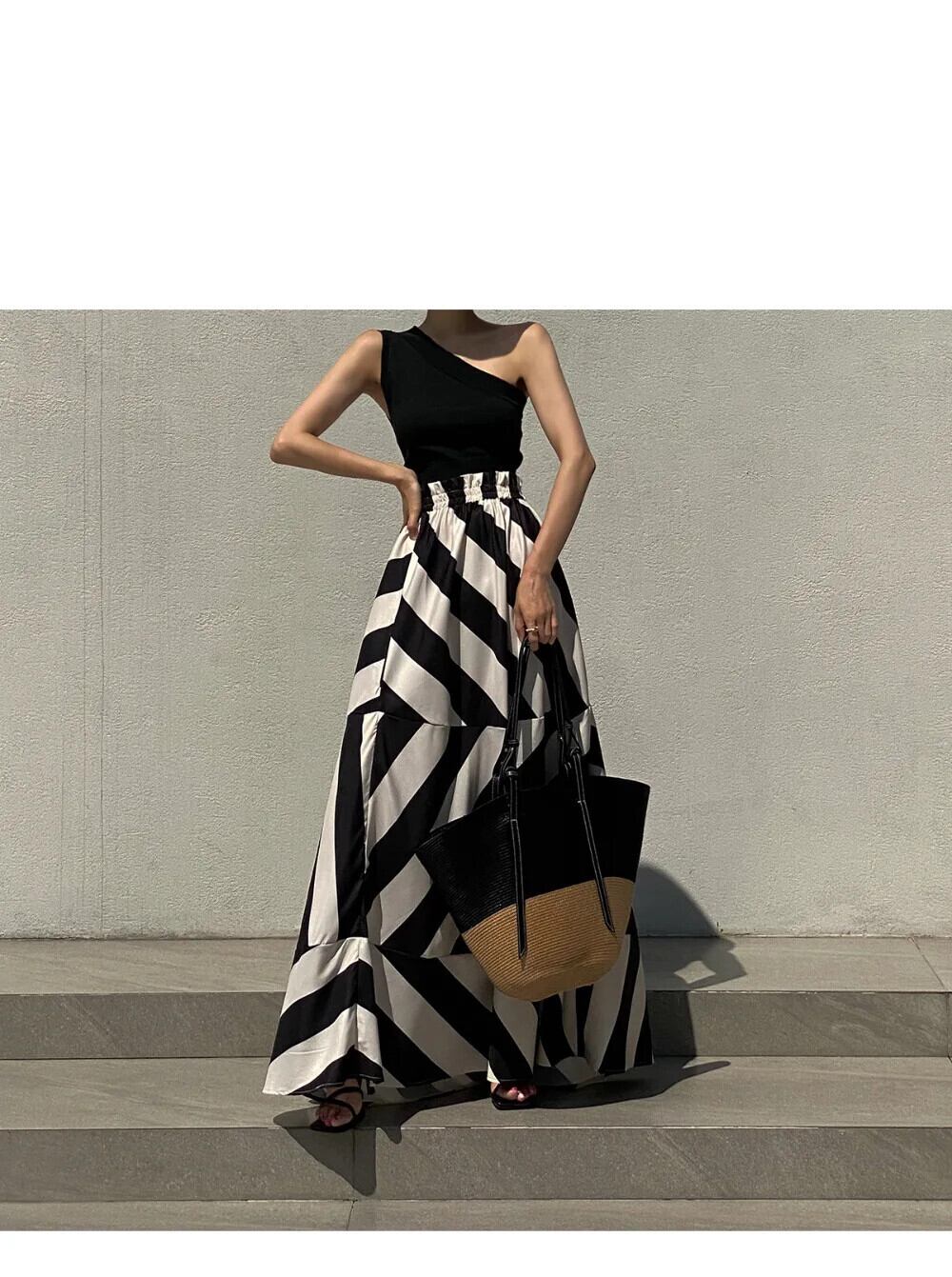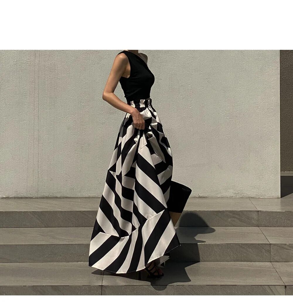 マキシスカートミディスカートロングスカートスタイル段段段 largas 不規則ストライプスカートゴスモーダ