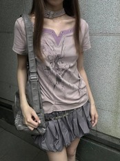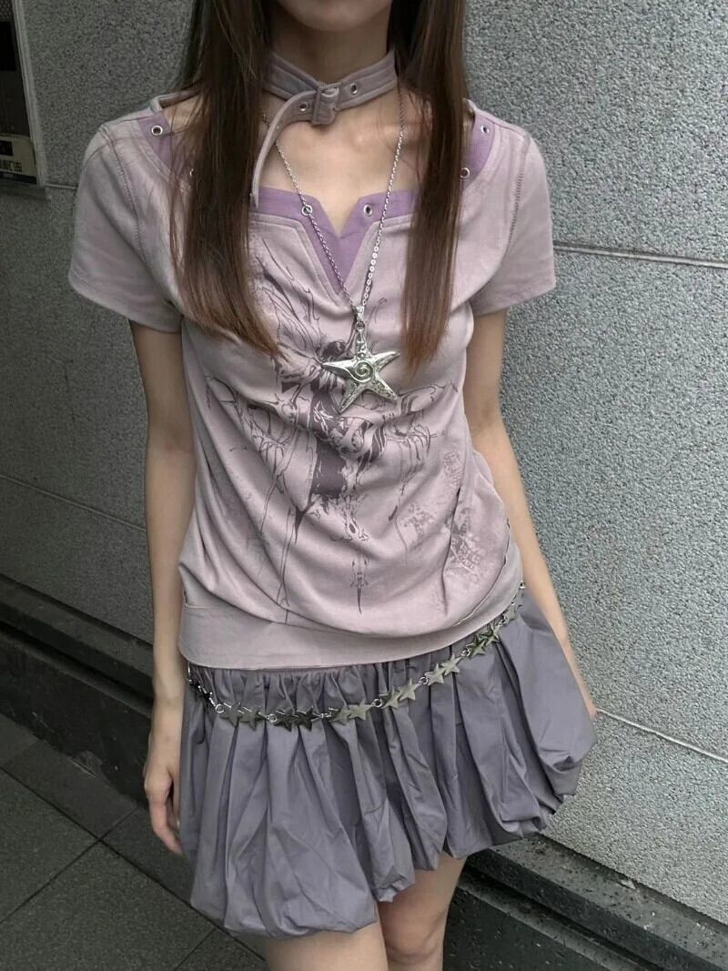 V ネック半袖 Y2k トップグラフィック Tシャツ Ropa 美的 Tシャツコットンクロップトップ Tシャツ原宿グランジ ショート ハーフスリーブ かわいい