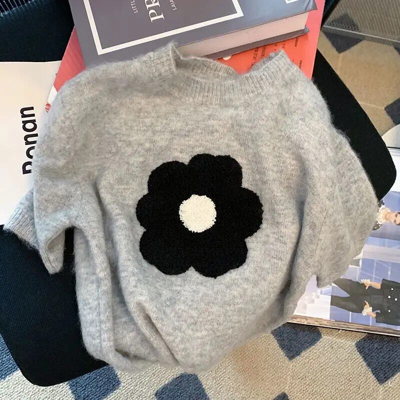 セーター夏半袖ニット Tシャツ Tシャツ甘いグレートッププルオーバーラウンドネック Tシャツトップス ショート ハーフスリーブ 大人ガーリー スウィート キュート カジュアル サマー 夏物 Oネック