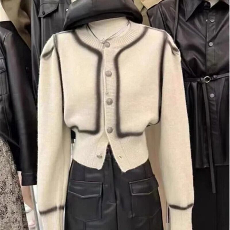 ニッチカラーコントラストシングルブレストニットカーディガンニットグレーセーターセーターセータークロップドカーディガンY2kトップ