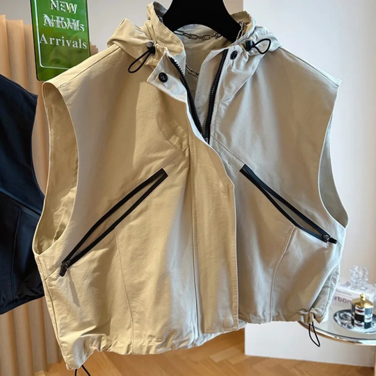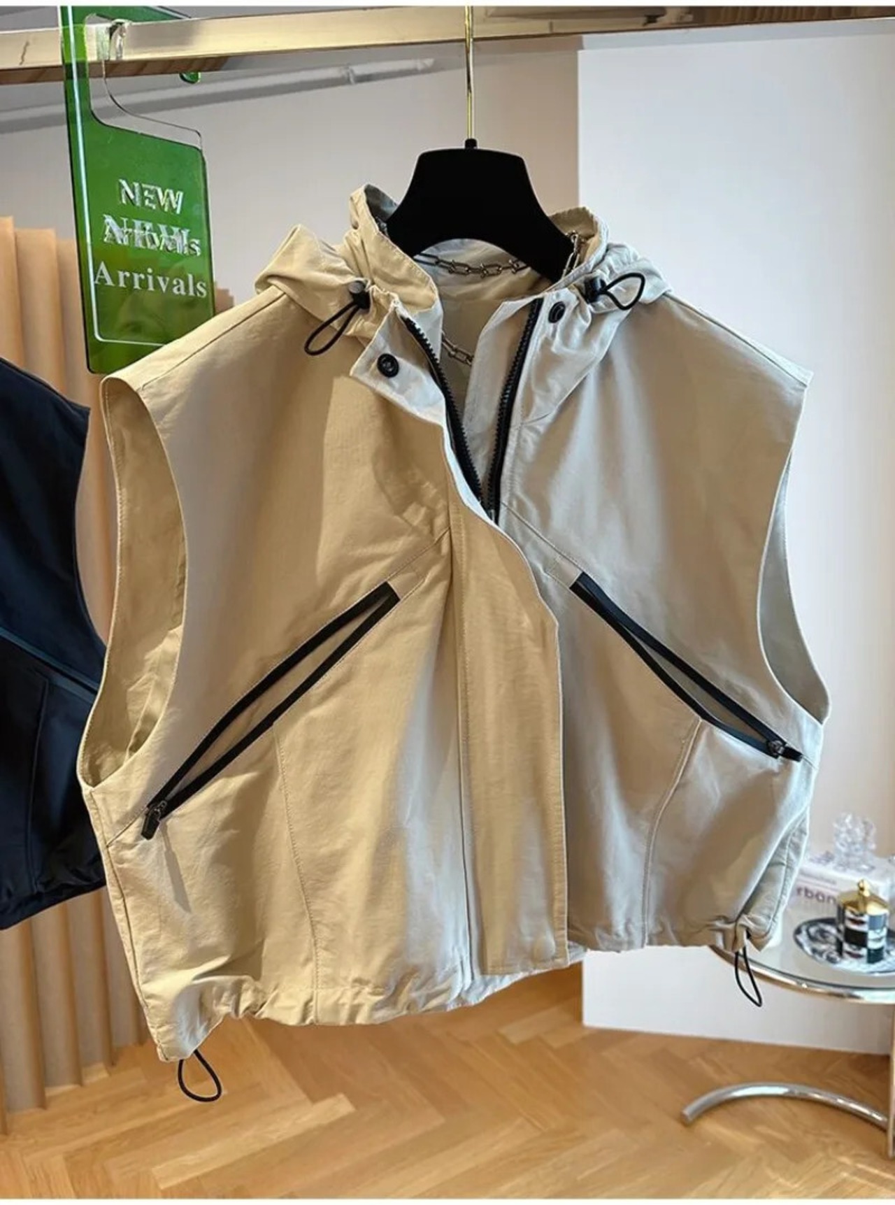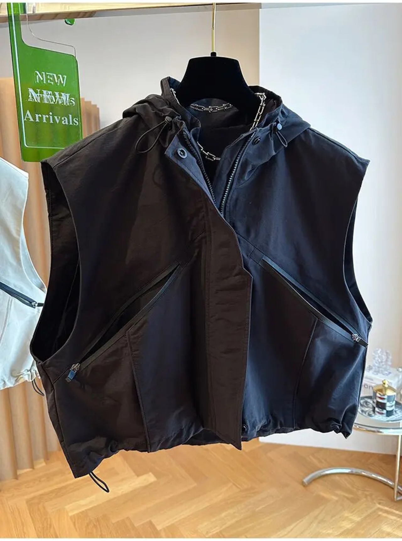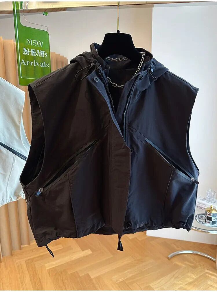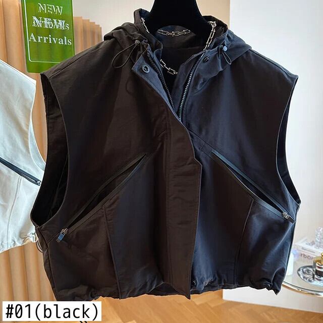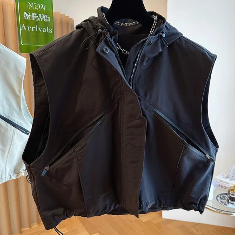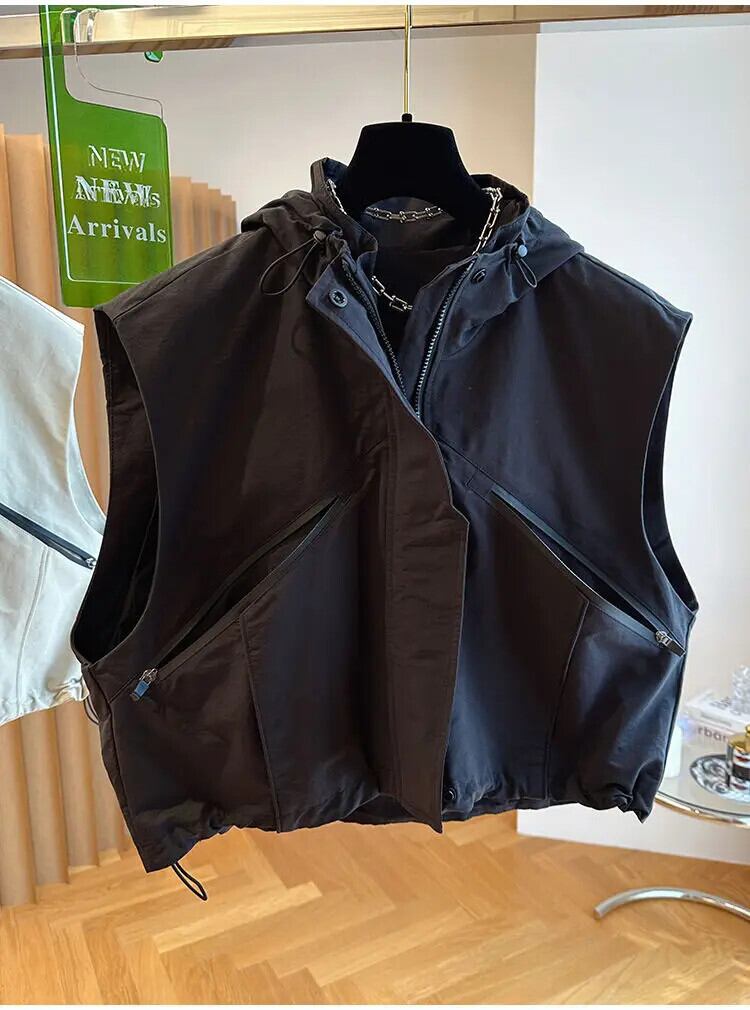 貨物チョッキ Chalecos Roupas レトロ黒ベストルーズフード付きコートタンクトップス ブラック