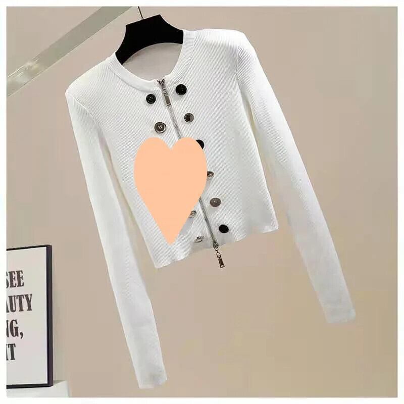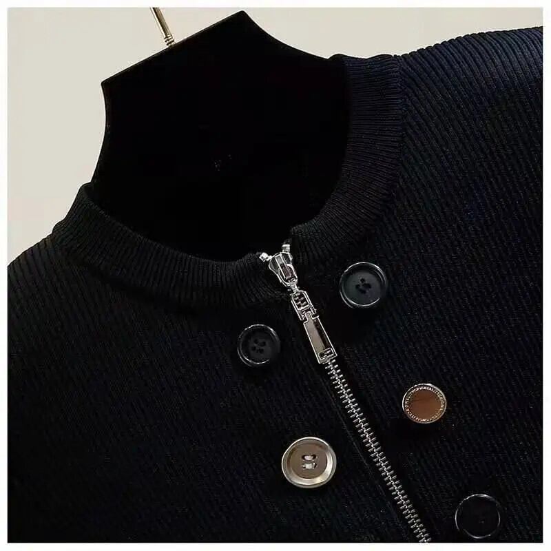 シックダブルブレスト丈カーディガンコート Ropa セーター O ネックスリムフィットジッパーニット Y2k セーター Oネック