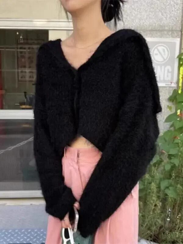 セーターシック秋冬アウターセーラー襟バックルソフトショート肥厚ニットトップクロップドカーディガン オータム 秋物 ウィンター 冬物