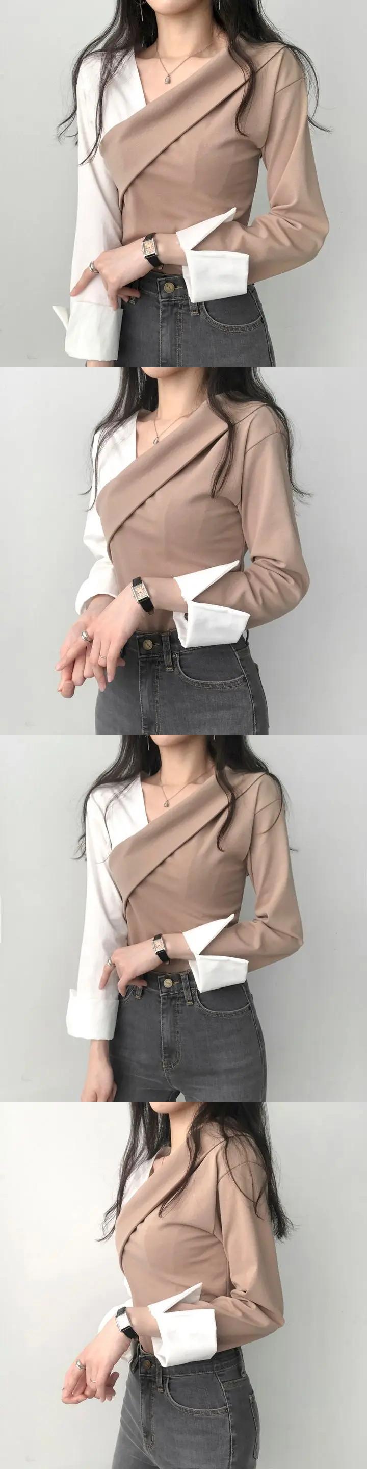 オフィススタイルワンショルダーセクシーワイルド春夏コールドブラウスシャツトップスコントラスト Tシャツ スプリング 春物 サマー 夏物 会社 学校 通勤や通学にも