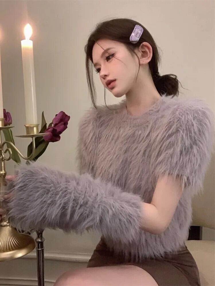 セーターセーター取り外し可能袖ニット Y2k 毛皮ミンクカシミヤセーター ソリッドカラー