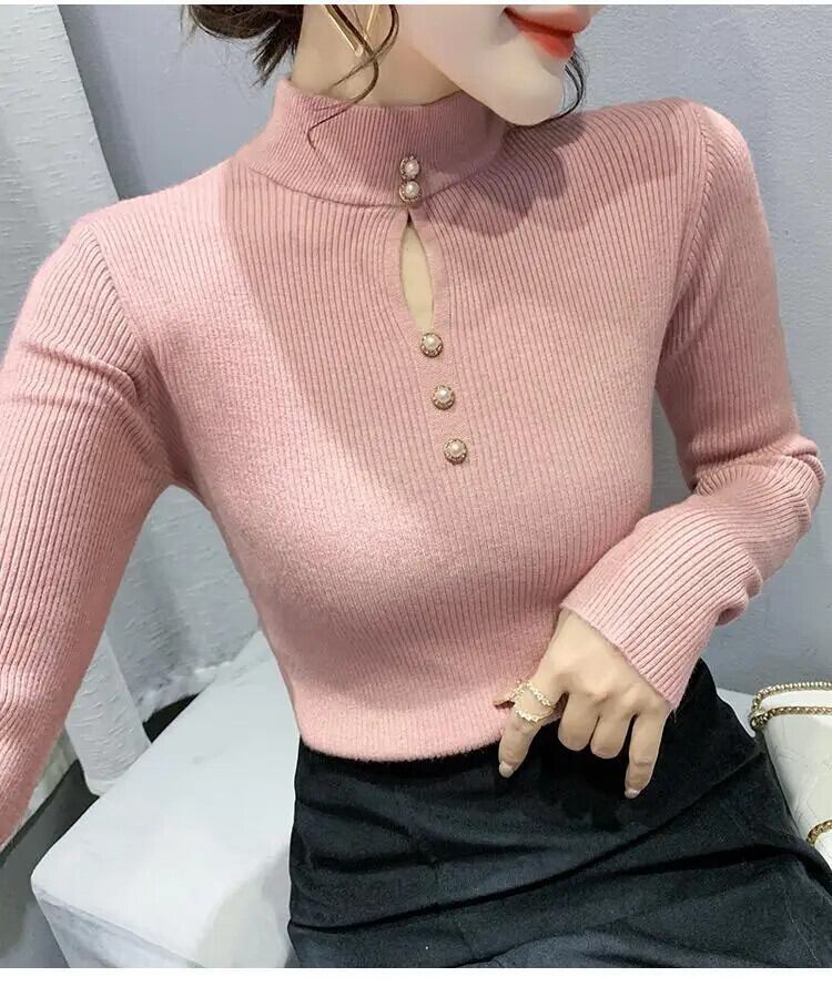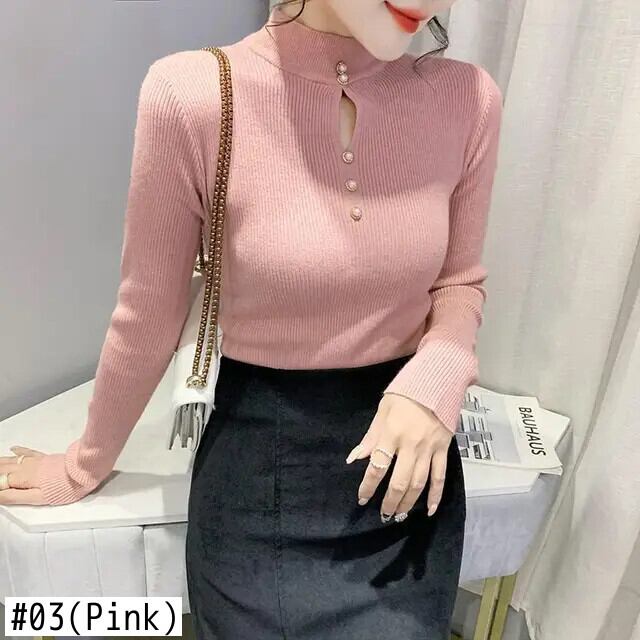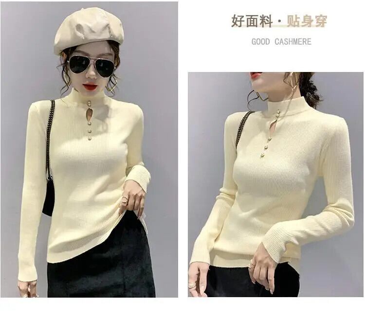 セーター ブラック スタンド ネック アウト シック ボタン プル ジャージ セーター Y2k ソリッド カラー 長袖セーター ロング ソリッドカラー