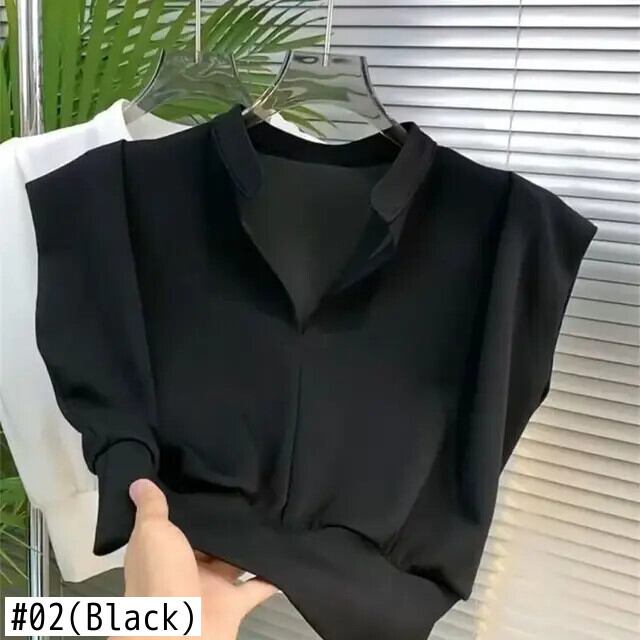 ウエストノースリーブ V ネックシャツ美的ニッチ半袖 Tシャツ白クロップトップスベストタンクロパブラウス ショート ホワイト ハーフスリーブ Vネック