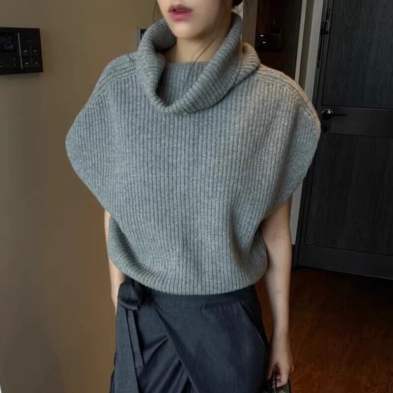 Chalecos パラ気質襟ソリッドルーズグレーニットセーターベストプリーツトップス Y2k セーターベスト Roupas ソリッドカラー