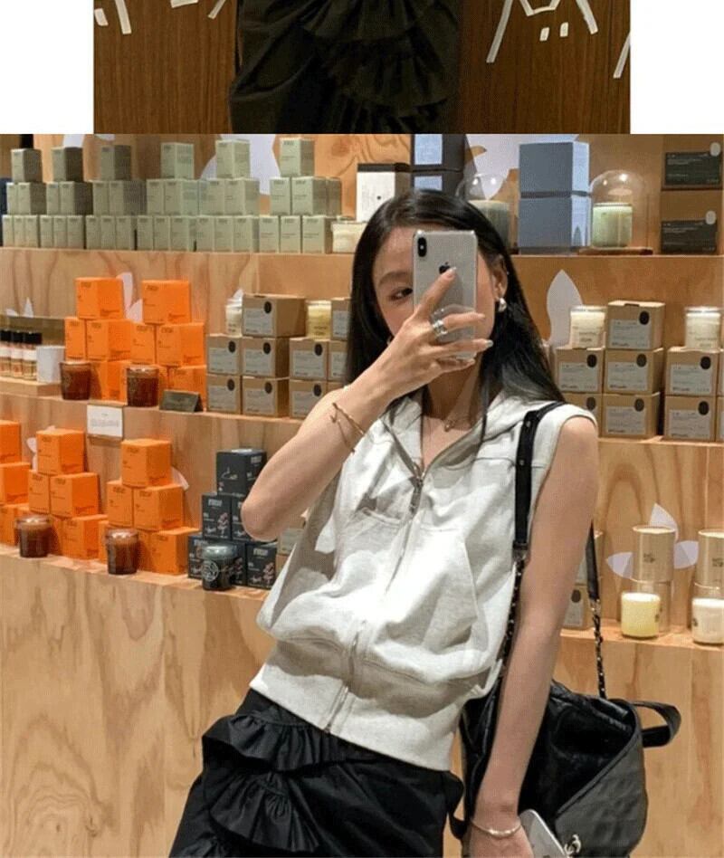 ベストジッパーポケットコートクロップトップ Y2k 美的グランジパーカー ese ストリートフード付き Tシャツ夏 サマー 夏物 ソリッドカラー
