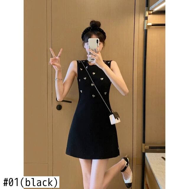 気質ライト高級パーティー春夏ノースリーブニット A ラインフレンチラブブラックドレスガールドレス スプリング 春物 サマー 夏物 Aライン