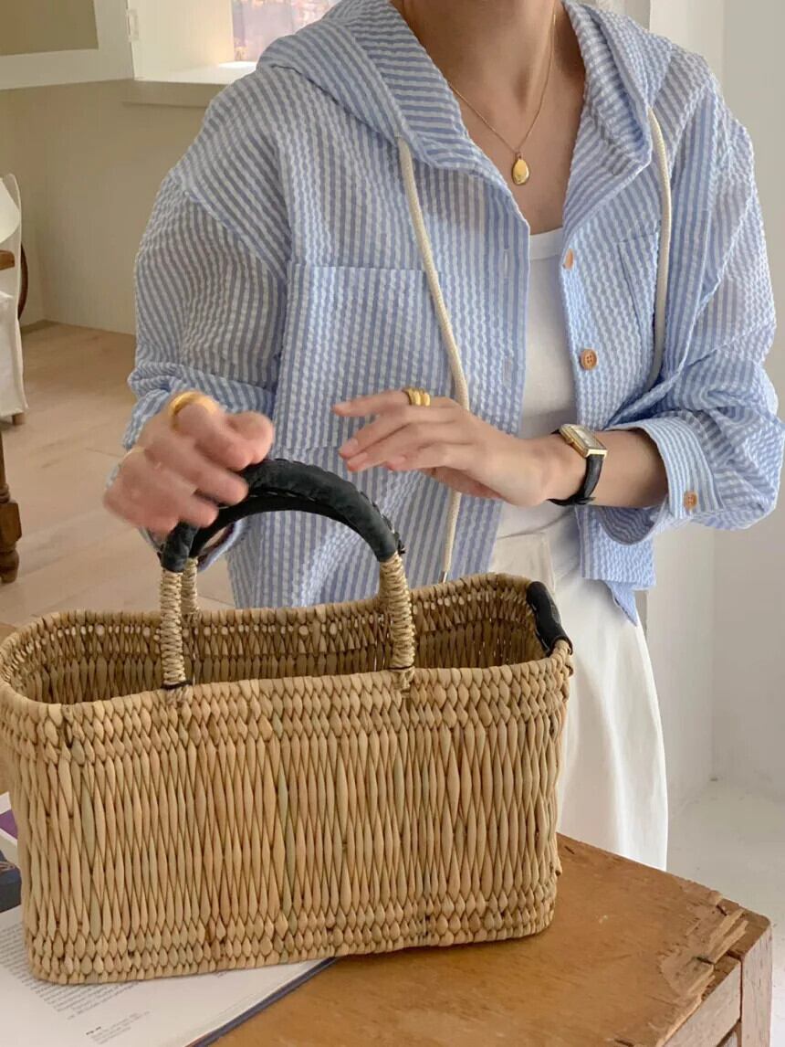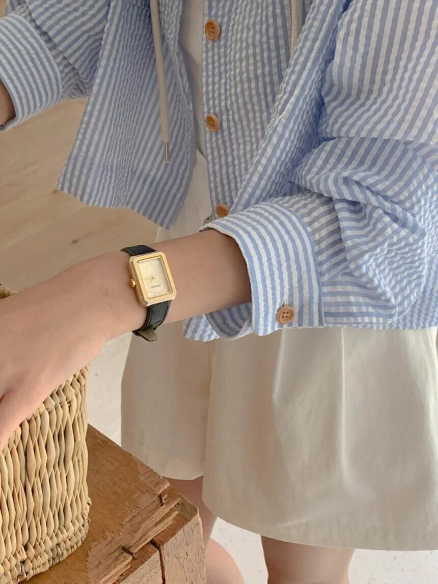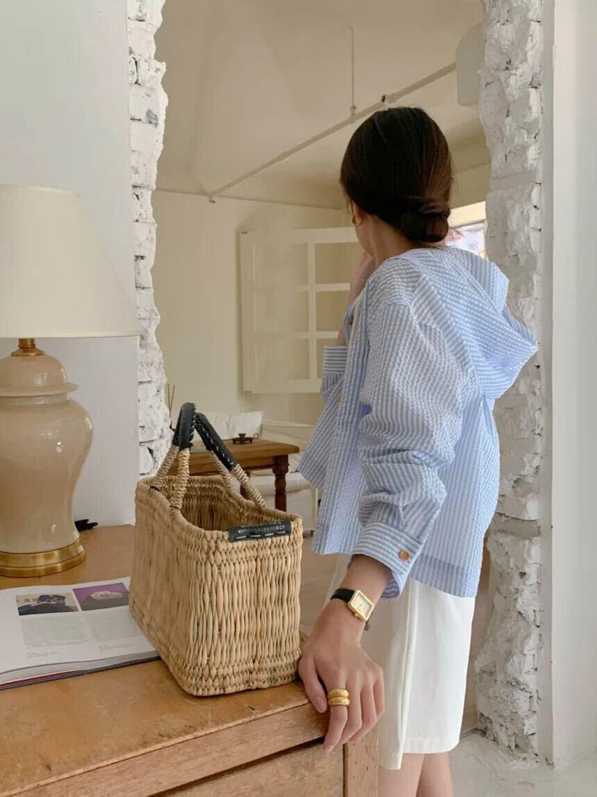 フレンチブルーストライプフードシャツアウターシック秋ルーズショートセンス長袖トップブラウス ロング オータム 秋物