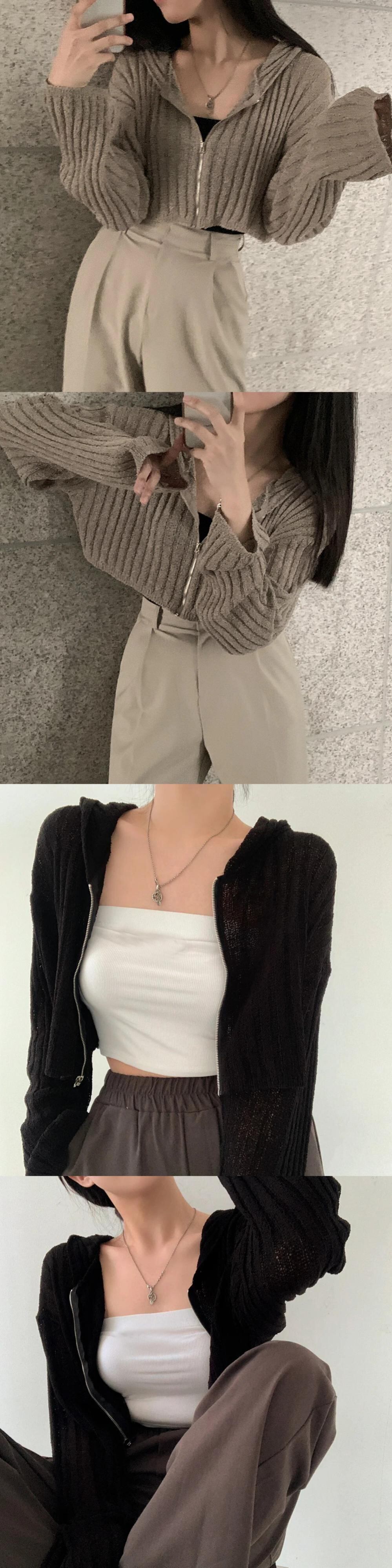 ショート長袖ソリッドニットジャケットトップスクロップドジッパーカーディガンY2kプルセーターフード付きセーター ロング ソリッドカラー