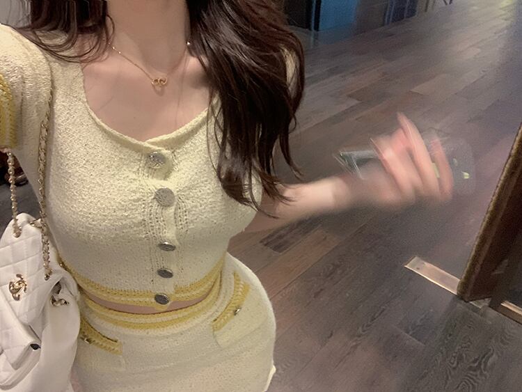 ニット半袖カーディガンレディース 2 ピースセットラップヒップボディコンスカートビーチ衣装クロップトップ ショート ハーフスリーブ