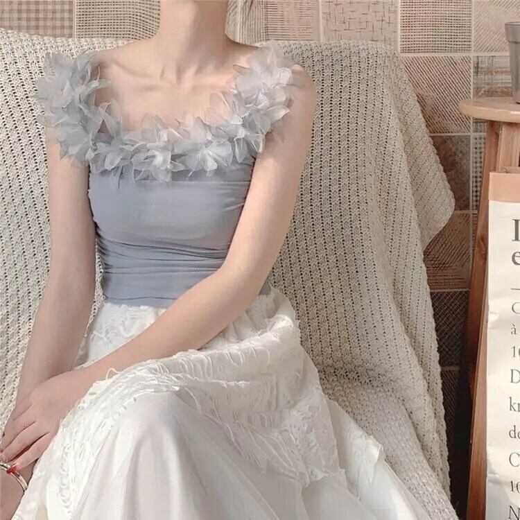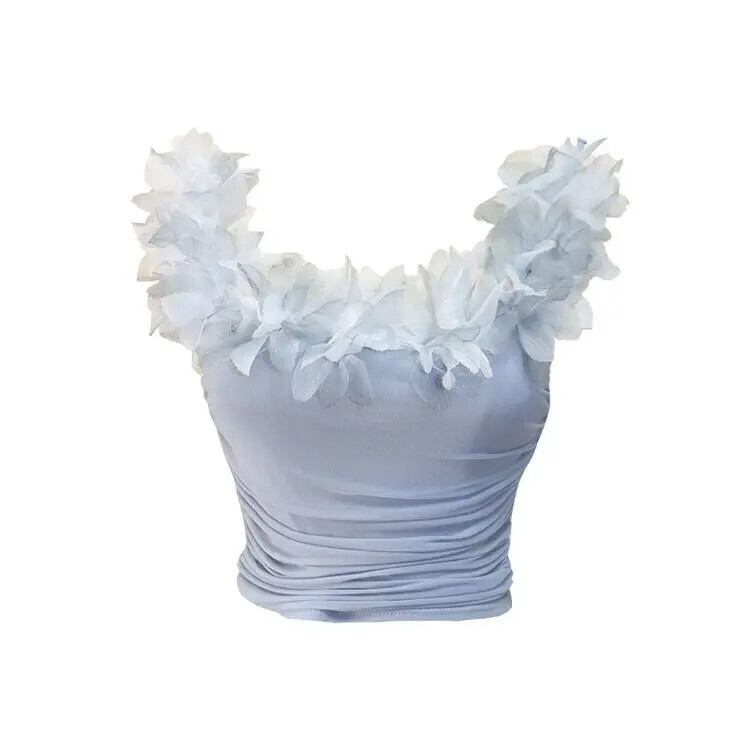 Ropa グランジ美的クロップトップシャツワンネックフラワータンクトップ夏キャミソール Tシャツ サマー 夏物 フラワーデザイン