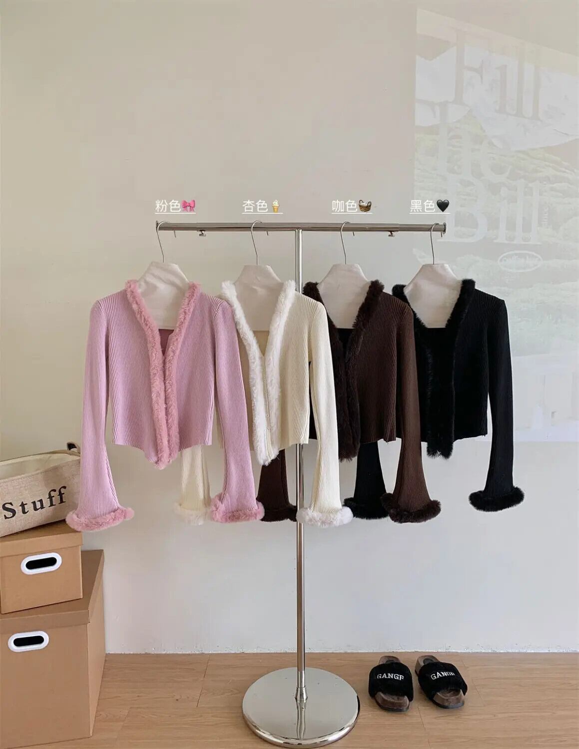 V ネック フレア長袖ニット パッチワーク フラシ天 スリム フィット セーター ボトム トップ ピンク カーディガン Feminino クロップ ファー コート ロング レッド Vネック