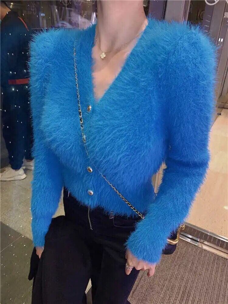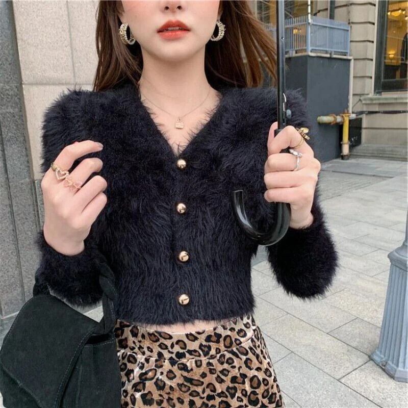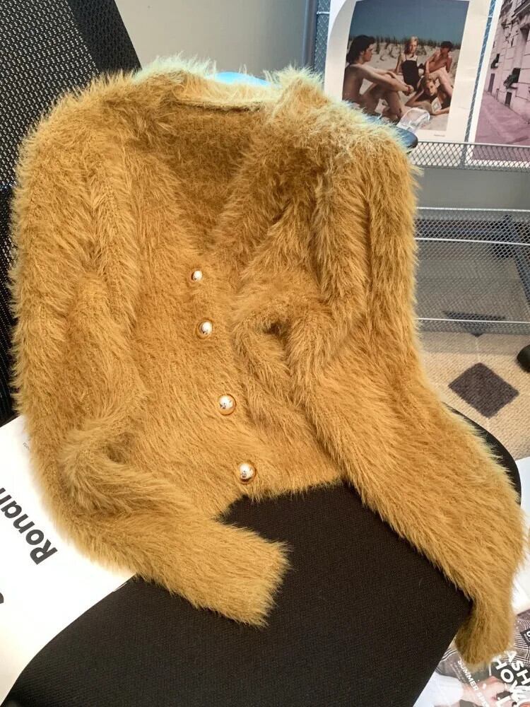 ミンクカシミヤセータースリムモヘアセーター V ネック白カーディガン Y2k 丈カーディガンプル ホワイト Vネック ソリッドカラー