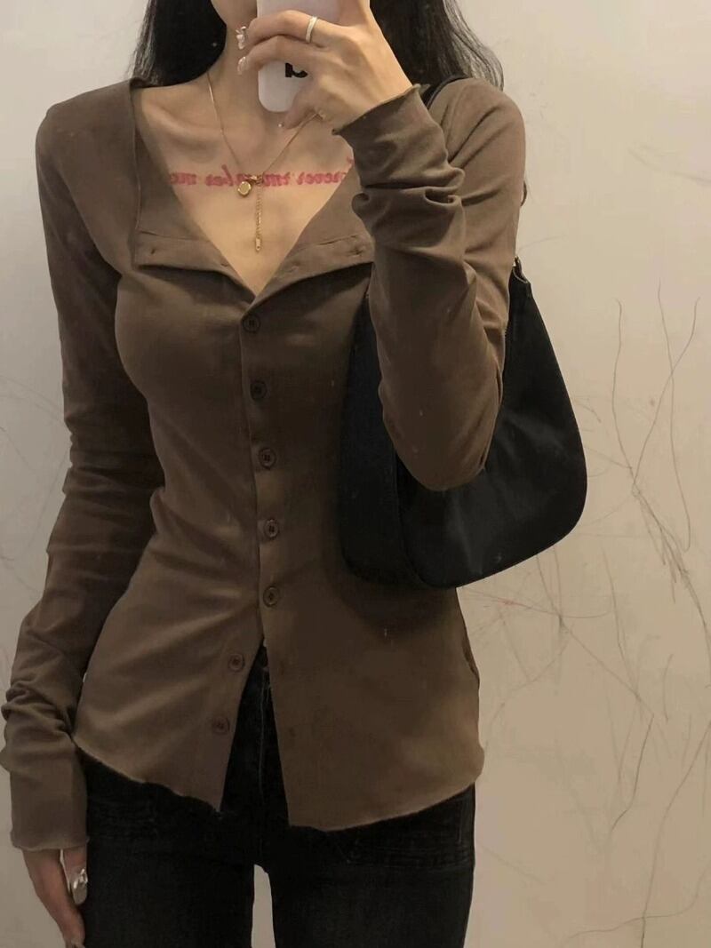 ブラウススタイル長袖セクシートップ原宿シャツオフィスレディ美的スリムシャツ ロング かわいい 会社 学校 通勤や通学にも