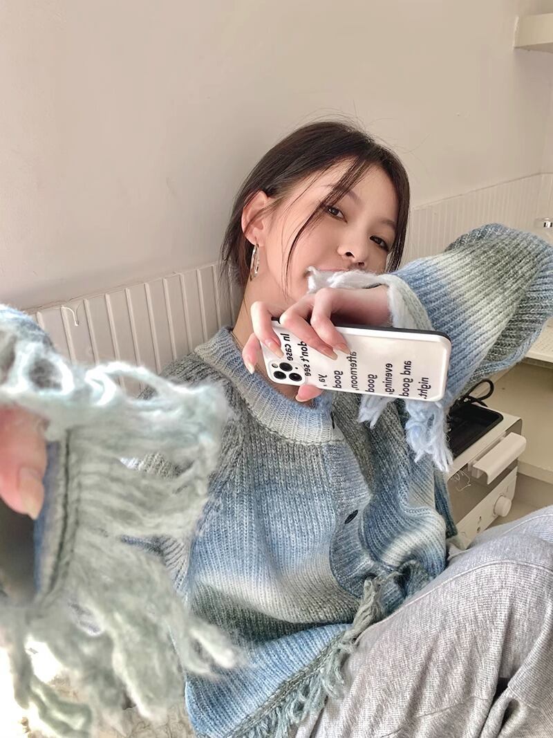 Y2K 電話セーターカーディガン原宿タイダイニットクロップジャケット秋ルーズゴシックニットトップコート かわいい オータム 秋物