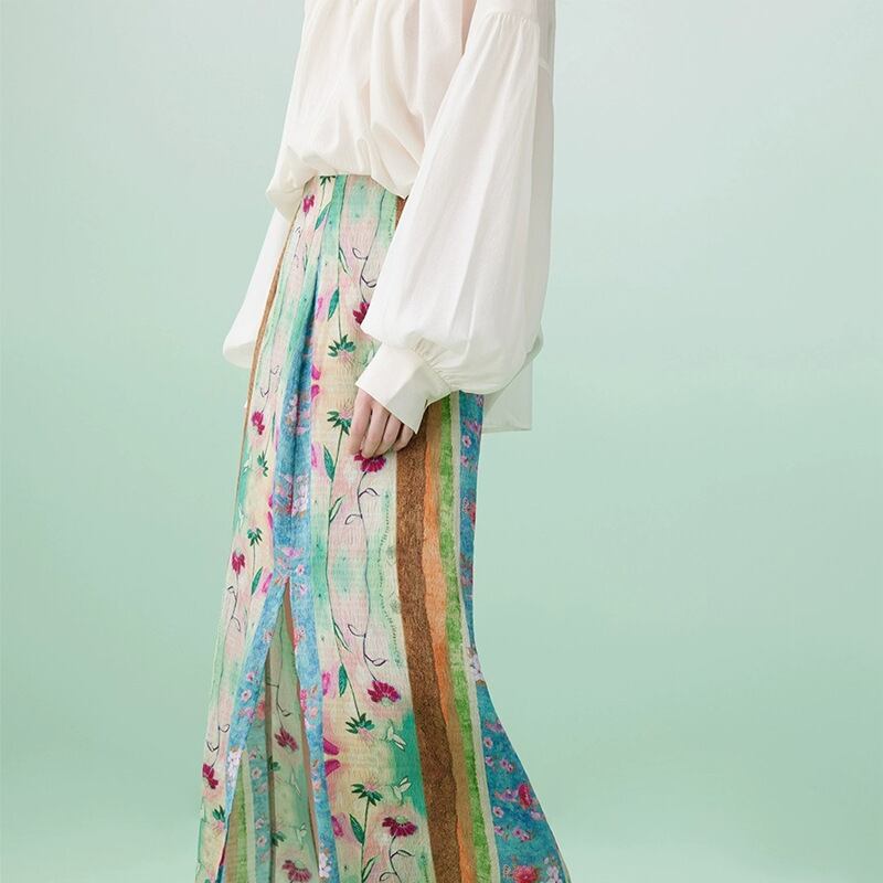 プリントスタイル Faldas Largas A ラインペチコートグランジ花柄スカートスリムシフォンスカート美学 Aライン