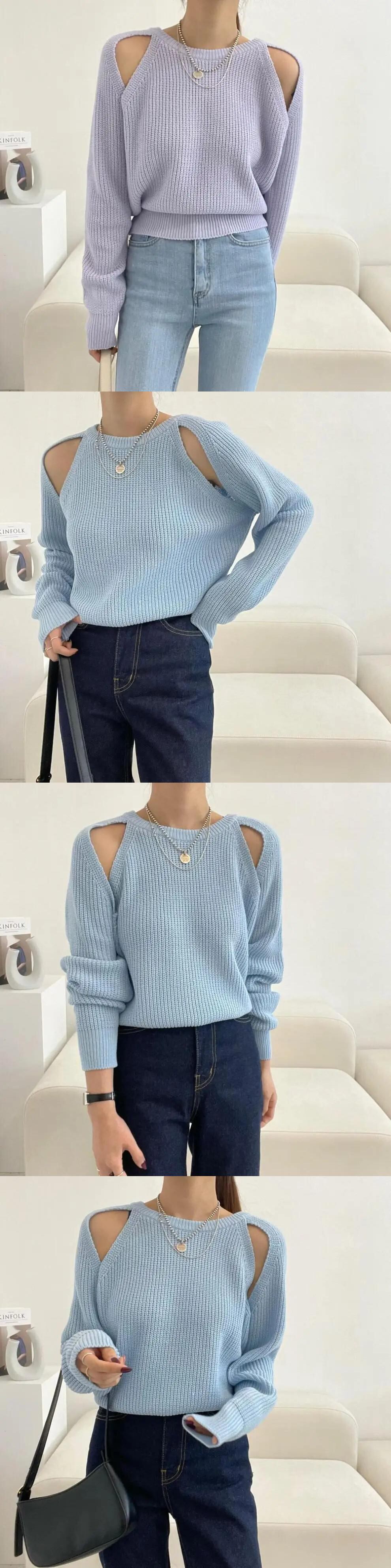 セーターオフショルダーニットトップス O ネック秋冬生き抜くプルオーバージャンパー オータム 秋物 ウィンター 冬物 Oネック ソリッドカラー
