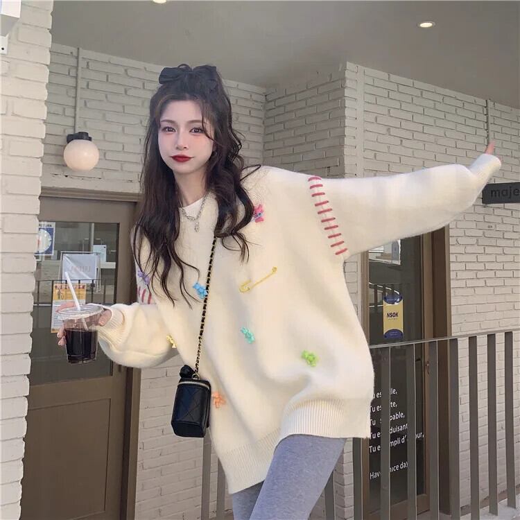 スタイリッシュセーター秋冬長袖 O ネックルーズトップスプルオーバーシックジャンパー ロング オータム 秋物 ウィンター 冬物 Oネック