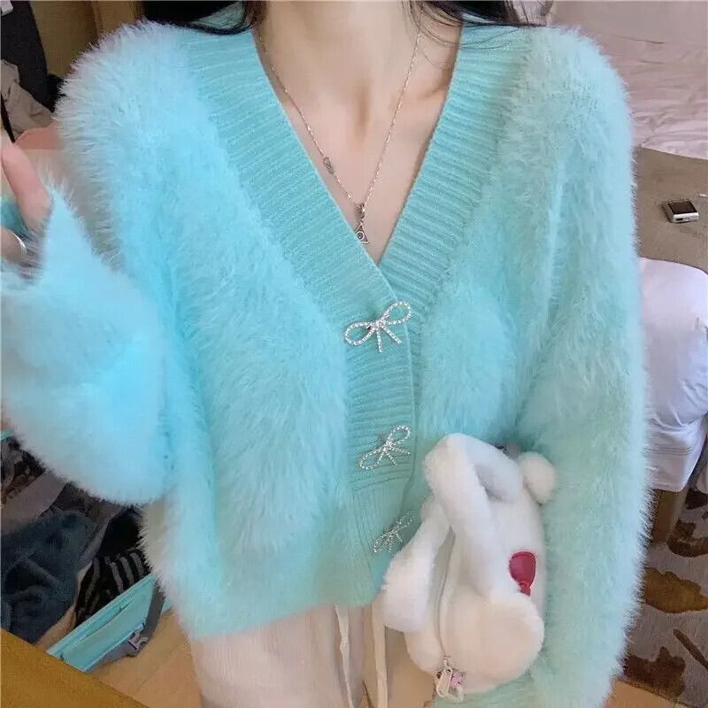 セーターミンクフリースニットカーディガンコートルーズ厚く暖かい春秋トップジャケット スプリング 春物 オータム 秋物