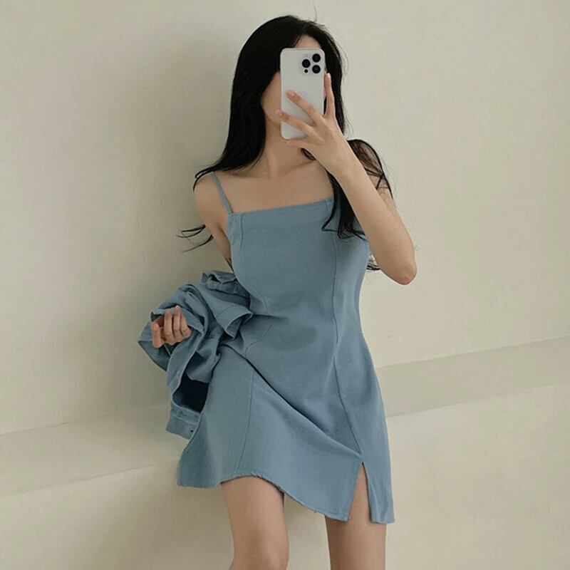 スリムサスペンダードレス Y2k スリング半袖デニムジャケットレディース 2 ピースセット春夏段 Faldas クロップコート衣装 ショート ハーフスリーブ スプリング 春物 サマー 夏物