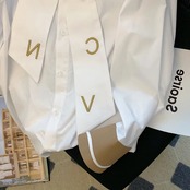 De 春秋レースアップボウブラウスレディースルーズバブルスリーブトップ白シャツシャツ ホワイト リボン スプリング 春物 オータム 秋物