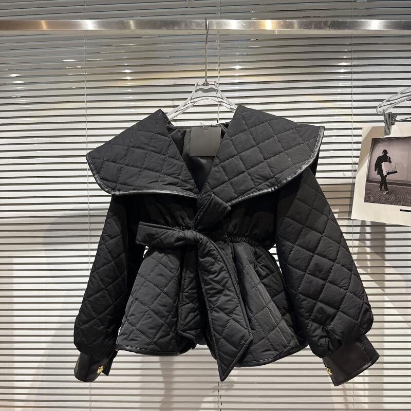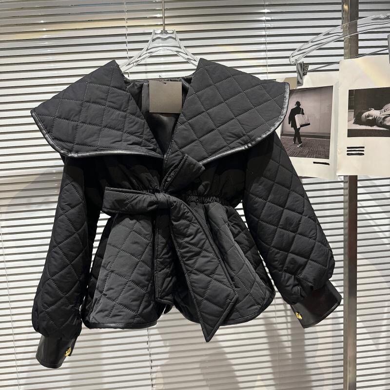 冬スタイルストリートカラーダイヤモンド格子綿ベルト綿入りコートコットンジャケット黒パーカー人形 Y2k トップス ブラック ウィンター 冬物 ハーネス