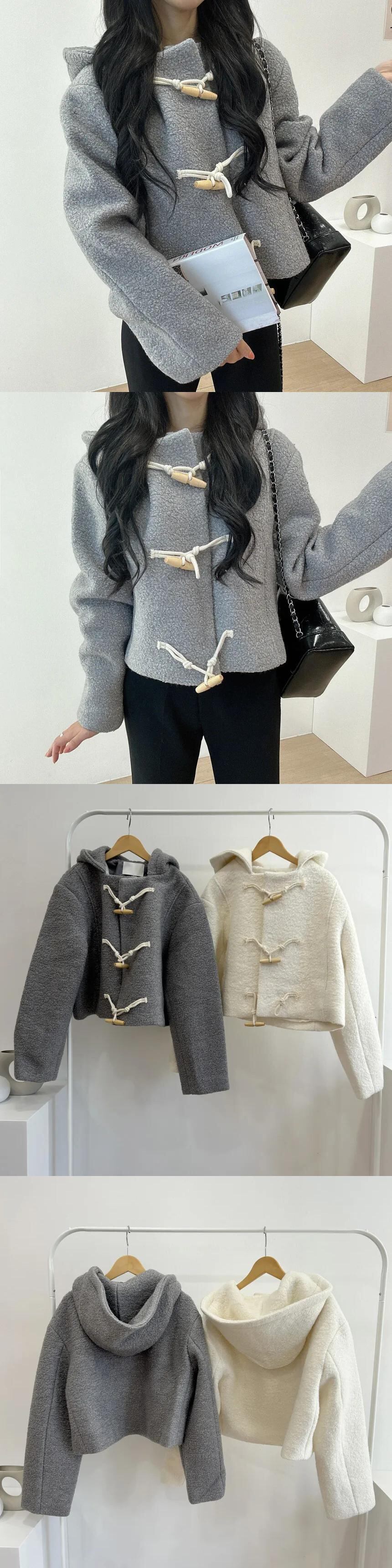 フード付きカウホーンボタンコートショートラムウールパーカートップ原宿カシミヤウールジャケット かわいい