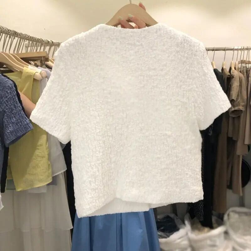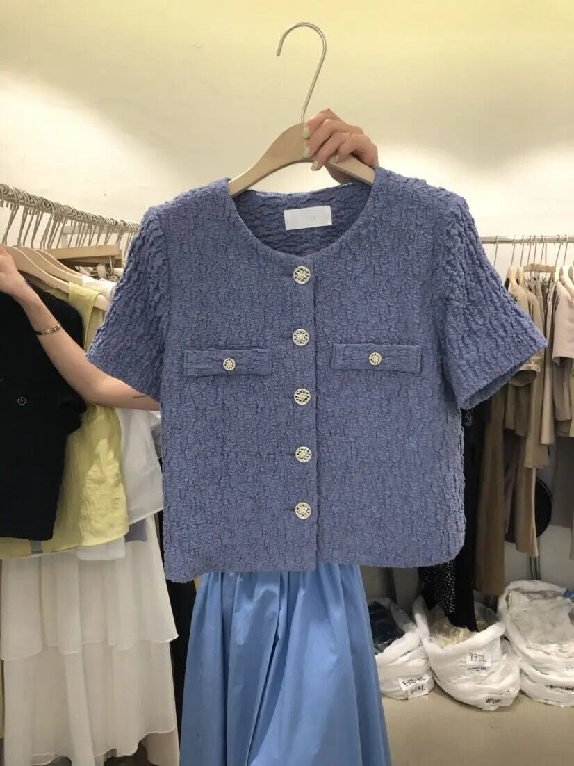 サマーコート O ネック半袖薄いシャツシンプルブラウススタイルシックトップス ショート ハーフスリーブ 夏物 Oネック