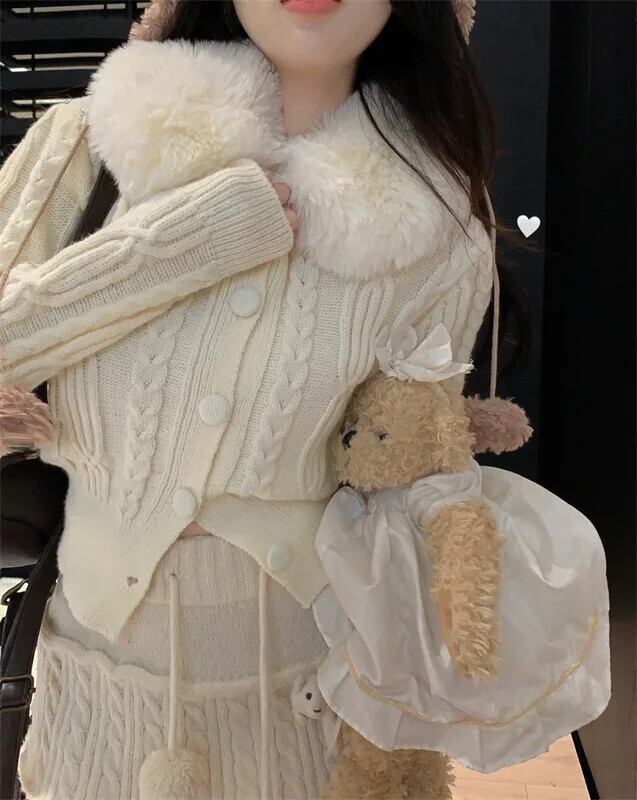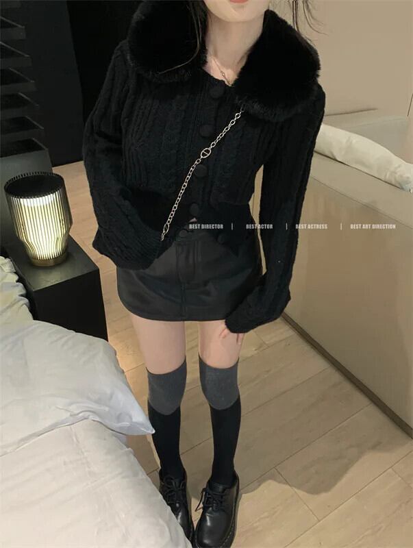 冬ニットセーター毛皮スリムカーディガン長袖暖かい Y2K ショートコート ロング ウィンター 冬物