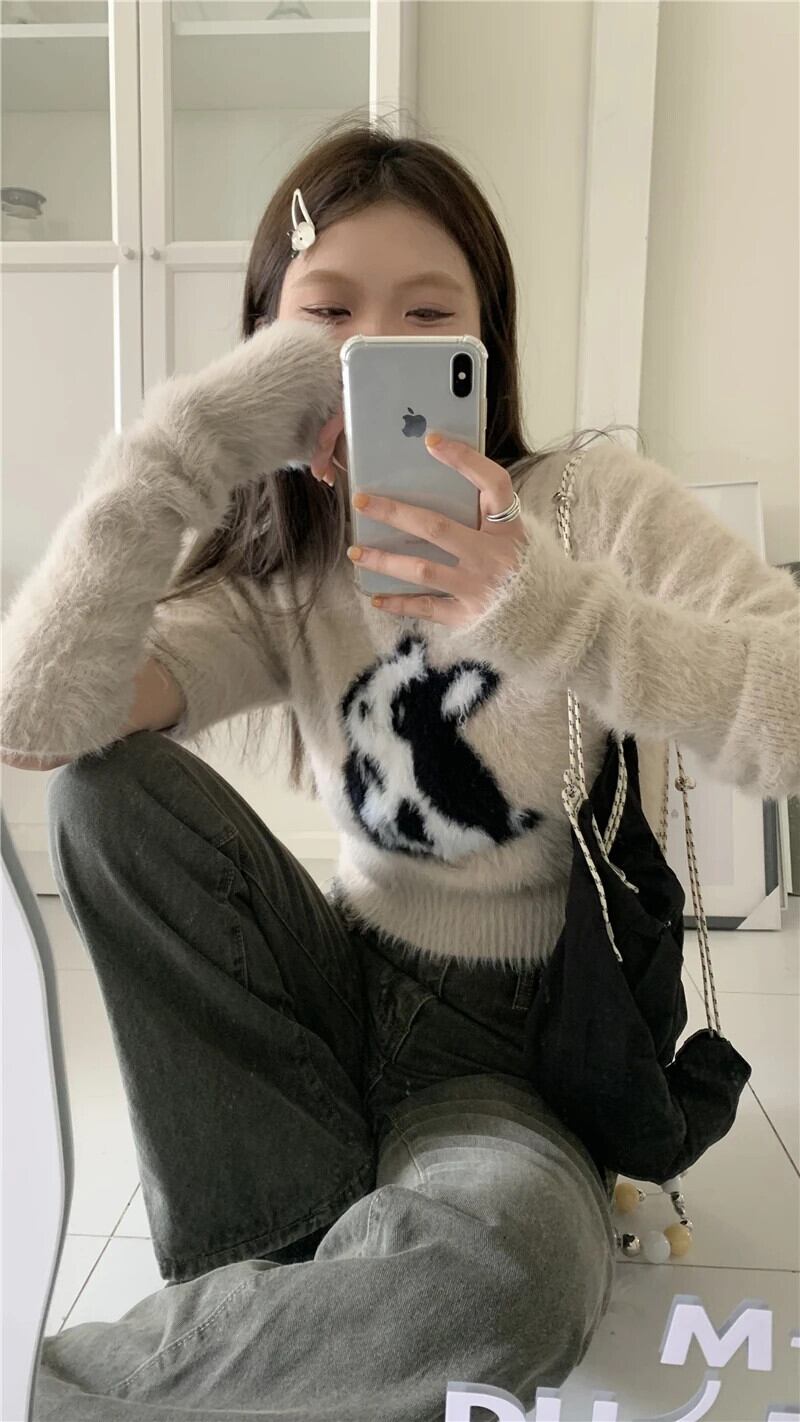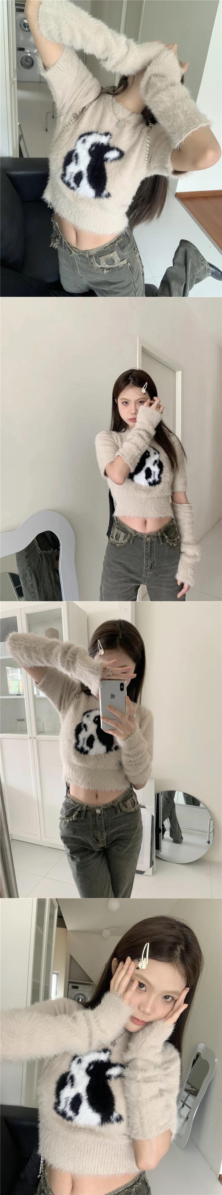 ミンクカシミヤショートセーターレディース秋かわいいウサギスリムフィットニットトップス袖付きセーターニット 大人ガーリー スウィート キュート カジュアル オータム 秋物
