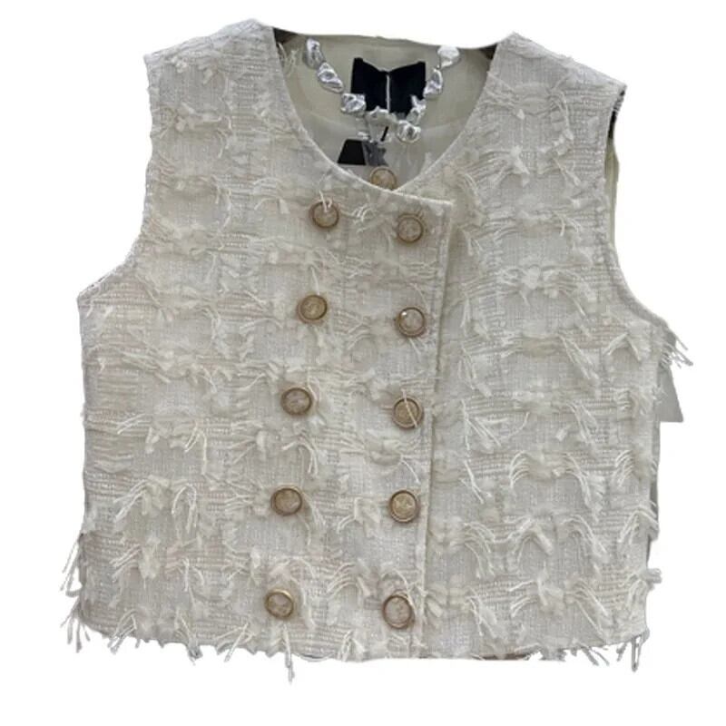 クロップトップス Chaleco スリムメタルダブルブレストホワイト Tels ベストジャケットチョッキ