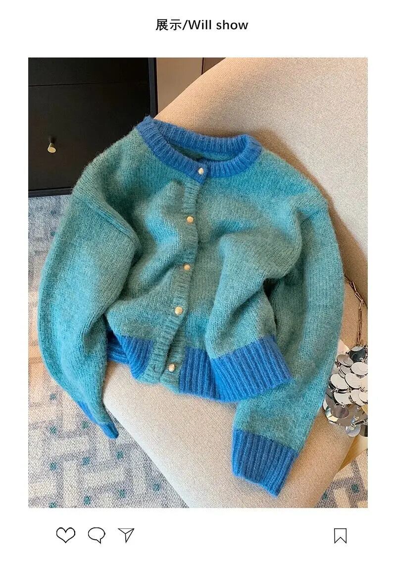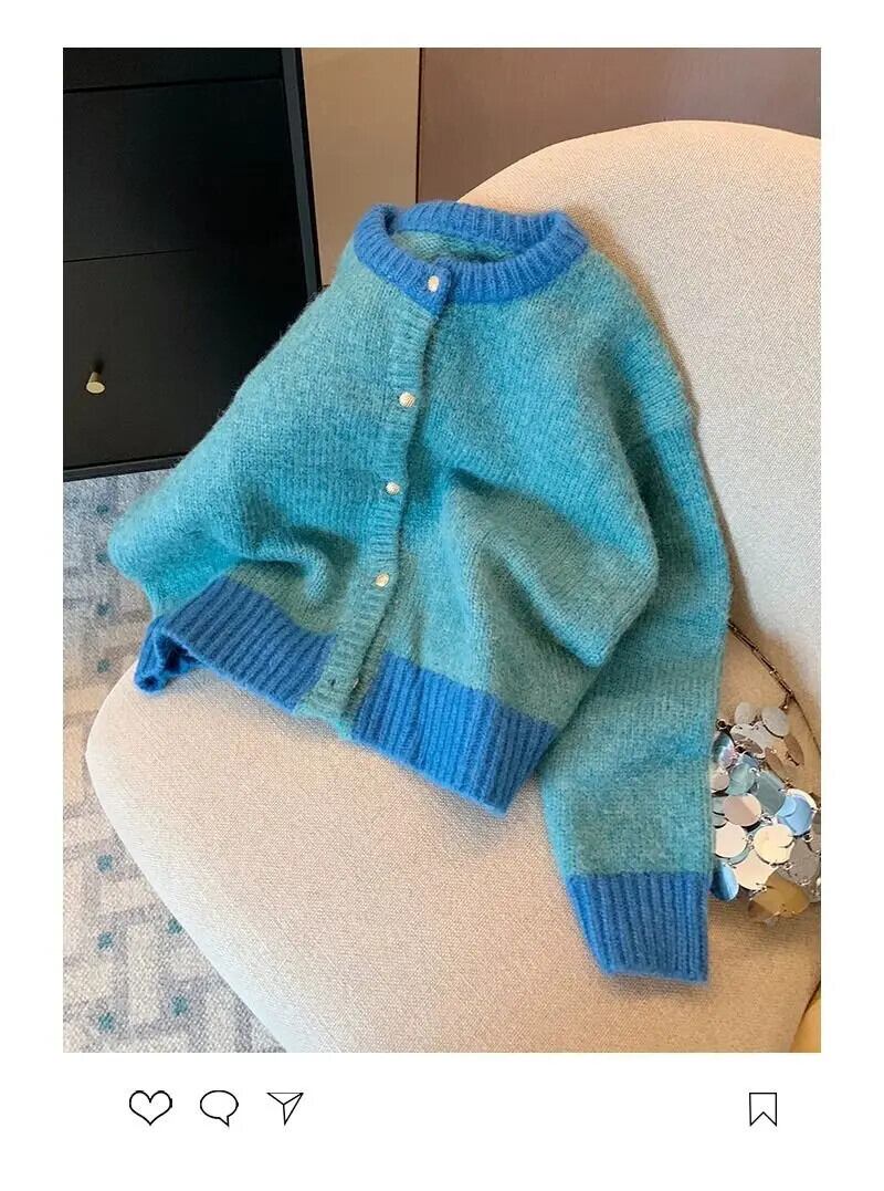 アメリカンスタイルニット秋冬 O ネックカーディガンセータージャンパー 2000 年代美的 ese オータム 秋物 ウィンター 冬物 Oネック
