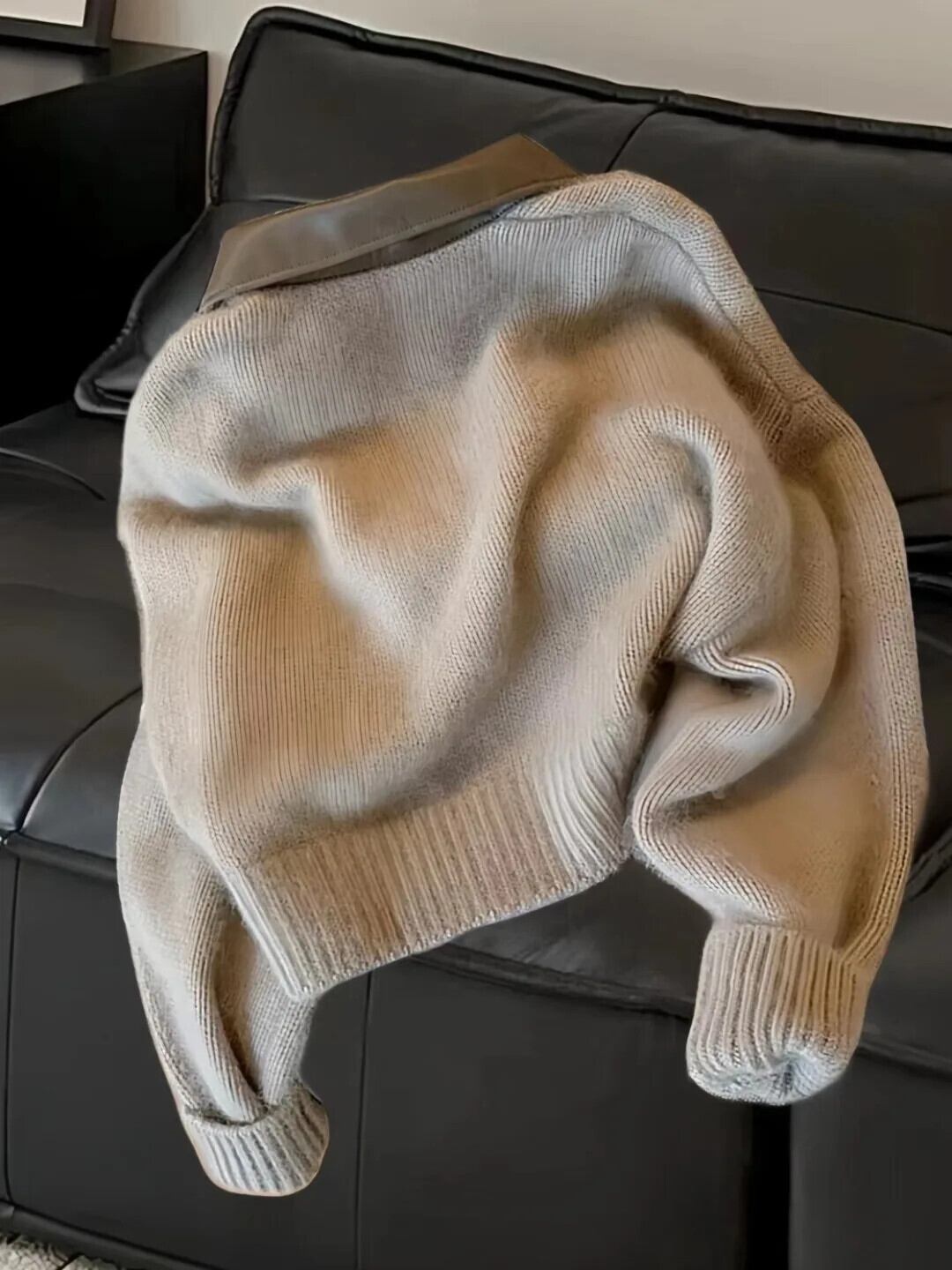 スプライス黒ニットカーディガンダブルジッパー怠惰セーターコート Y2k Pu ラペルクロップド特大トップス ブラック