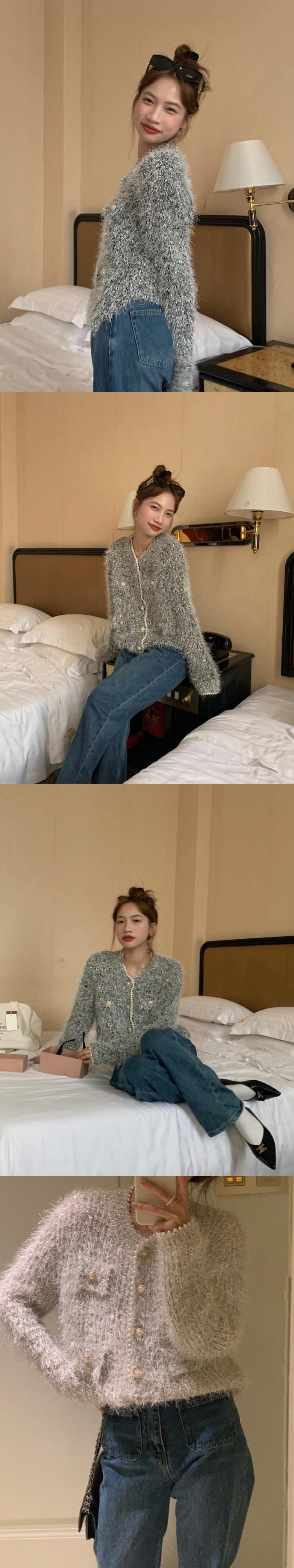 プル重い気質ビーズセーター秋冬トップス O ネックニットクロップドカーディガンセーター オータム 秋物 ウィンター 冬物 Oネック