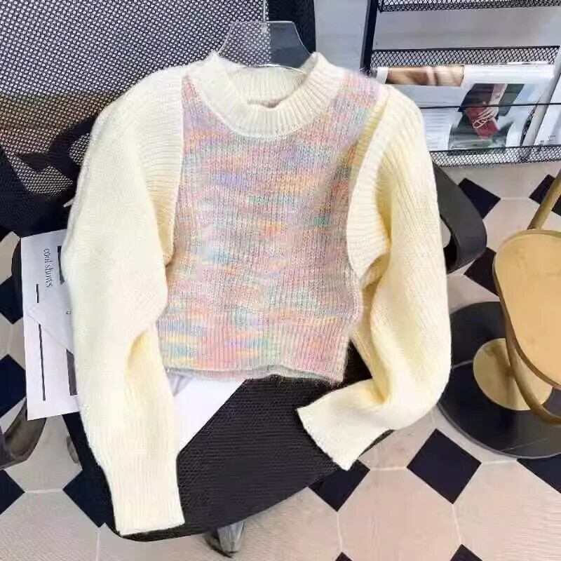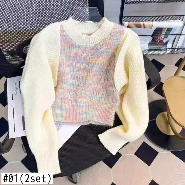 オールマッチ ニット 2 点セット クロップド カーディガン スイート ノースリーブ タンク ベスト Y2k 美的プレッピー スタイル 原宿 大人ガーリー スウィート キュート カジュアル かわいい