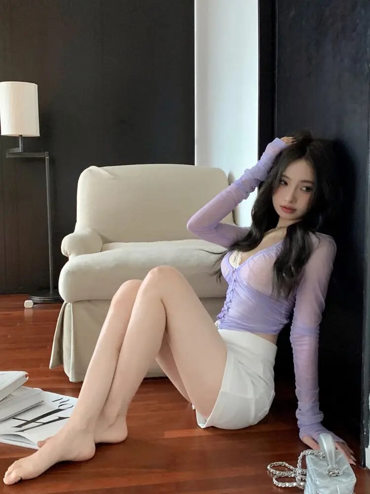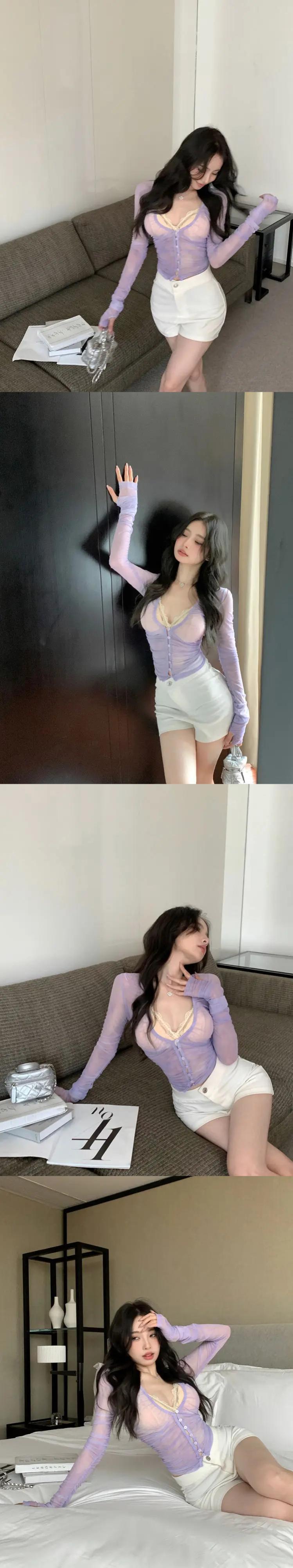 ガールプリーツセクシー長袖日焼け止めトップ夏スモールフィットメッシュ視点薄い Tシャツブラウス ロング サマー 夏物