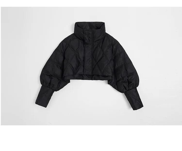 冬気質ランタン スリーブ コットン パーカー ジャケット チェック柄ドレス ショート トップ ブラック セット ランタンスリーブ ウィンター 冬物