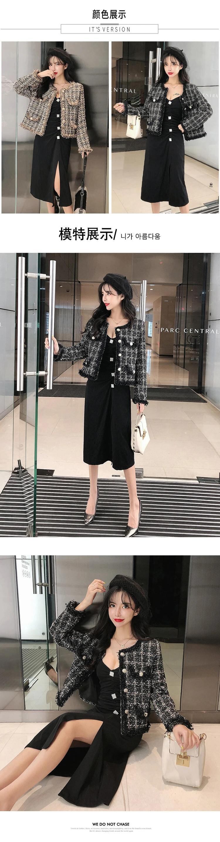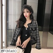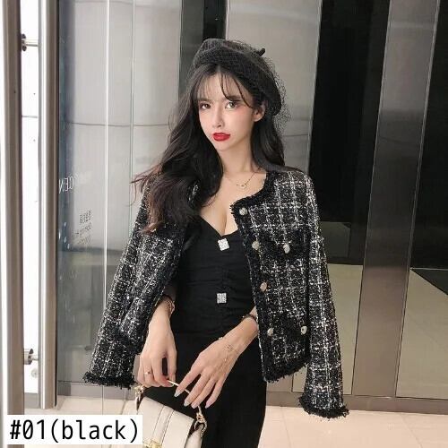秋冬ツイードジャケットコート小さ香りパッチワークウールクロップドコートショートアウター オータム 秋物 ウィンター 冬物