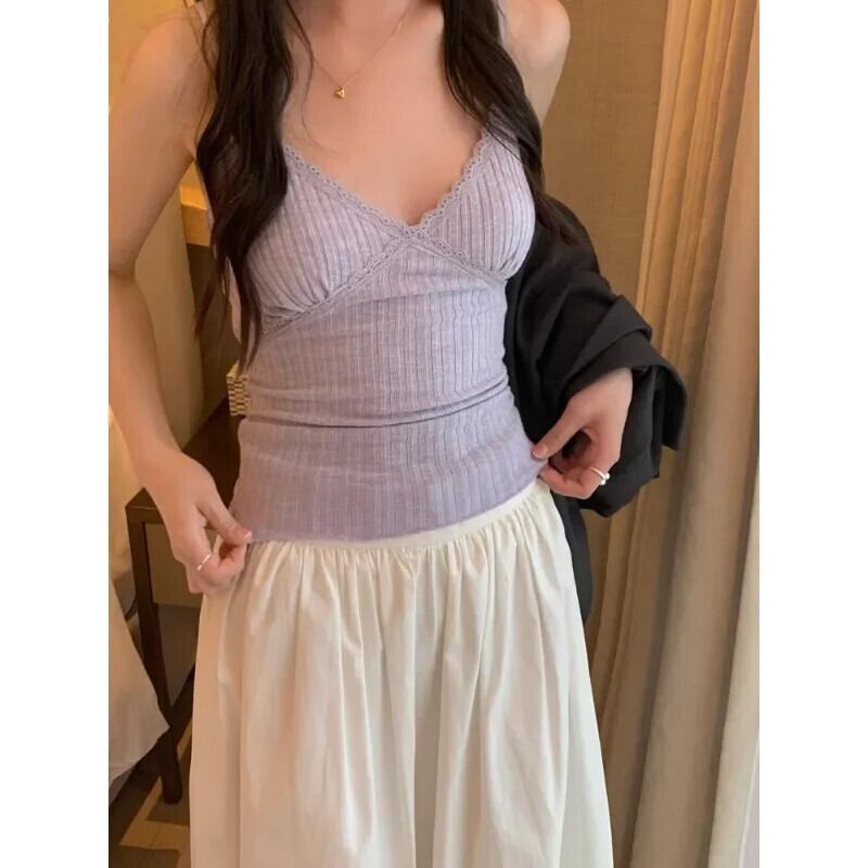 キャミソール原宿 Y2k トップス ニットベスト O ネックノースリーブチュニックタンク Ropa アウトセクシークロップトップ かわいい Oネック