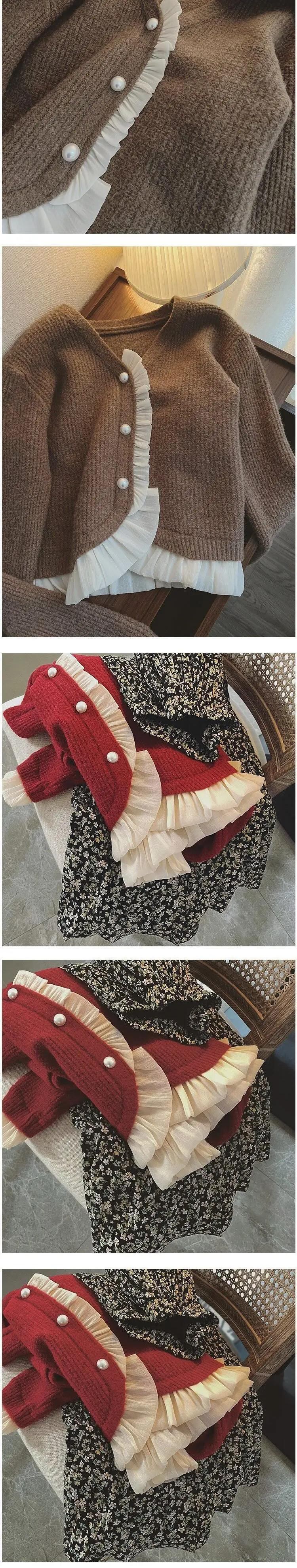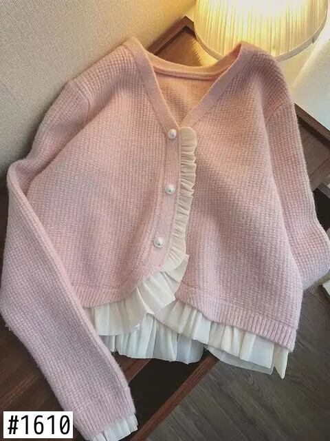 Fungus V ネック セーター ピンク カーディガン クロップド スイート セーター Y2k トップ ニット コート 大人ガーリー スウィート キュート カジュアル Vネック