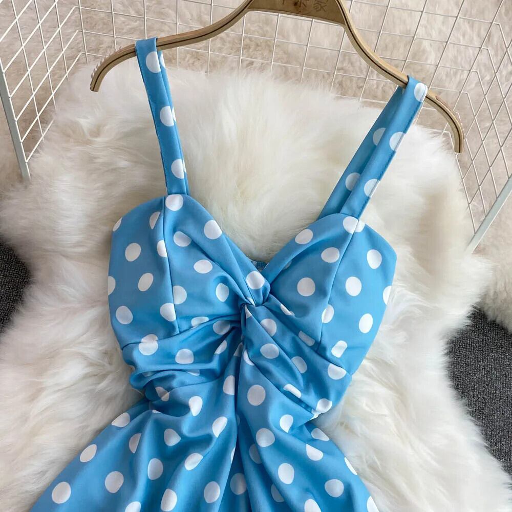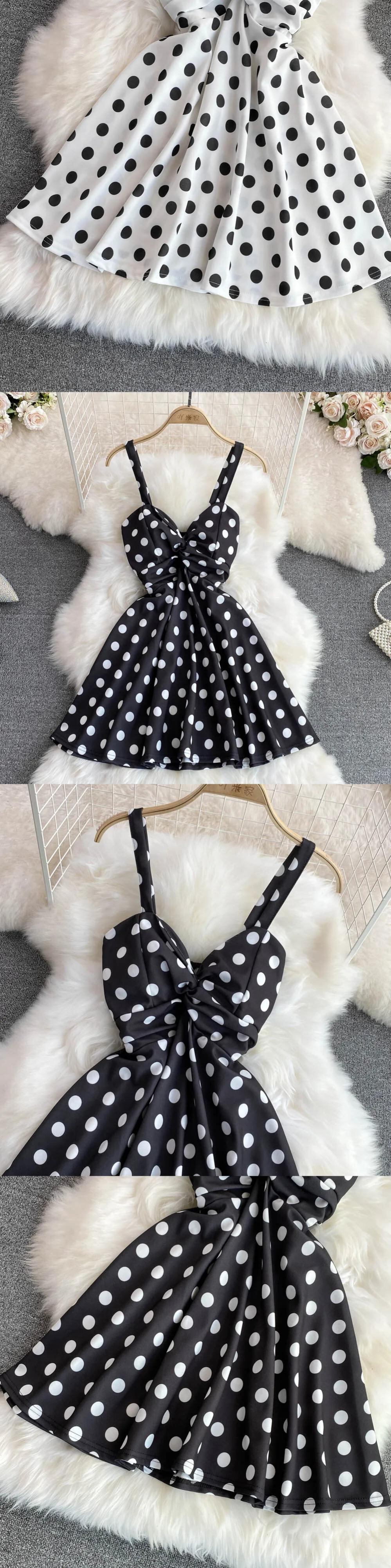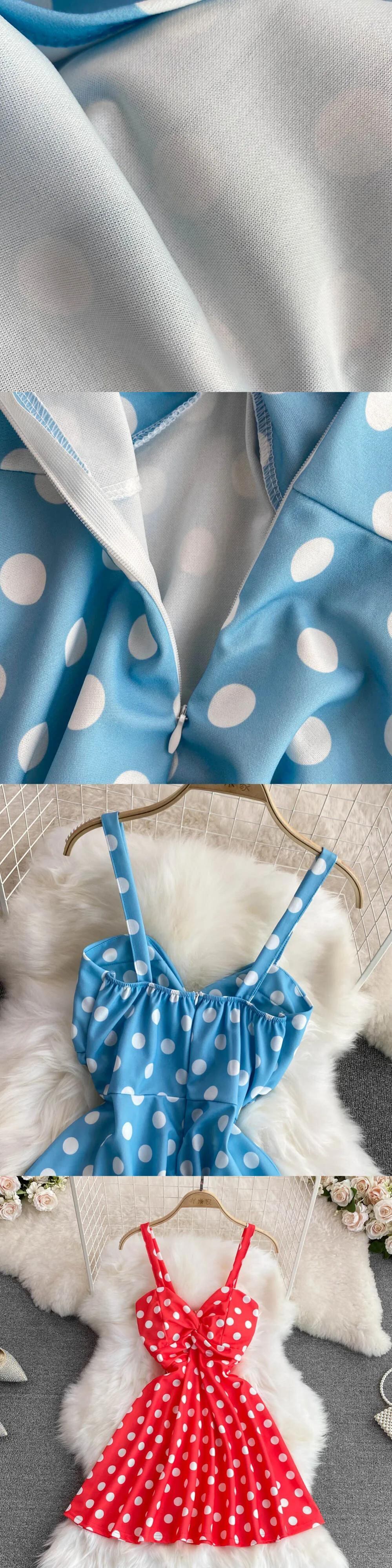 ドレス夏スタイル水玉サスペンダー V ネックノースリーブ背中開いた A ラインセクシー Vestidos Hotsweet 大人ガーリー スウィート キュート カジュアル サマー 夏物 Vネック Aライン