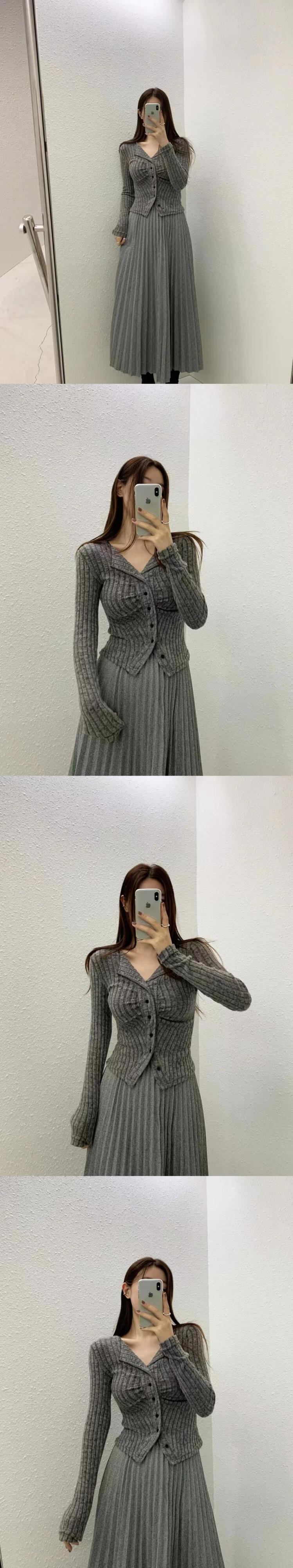 プリーツ不規則ラペル長袖ニットセーター春クロップドカーディガンスリムフィットボトムTシャツプルジャージ ロング スプリング 春物