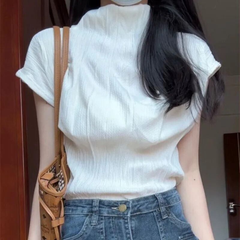 半袖 Tシャツスリム ed ひだシッククールストリートヒップホップオルシンプル原宿 2024 クロップトップス かわいい